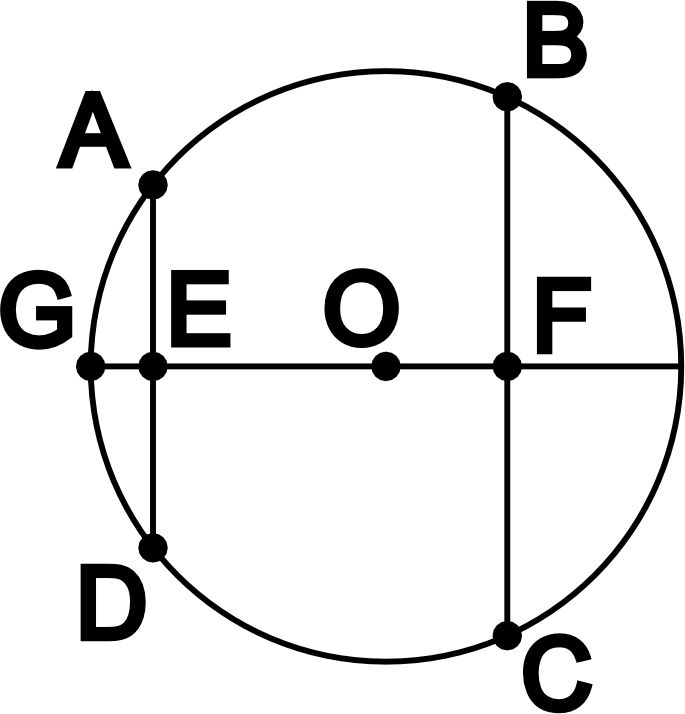 - Если диаметр перпендикулярен хорде, не являющейся диаметром, то он он делит хорду точкой пересечения пополам. Также точкой пересечения с диаметром делится пополам дуга, стягиваемая данной хордой.