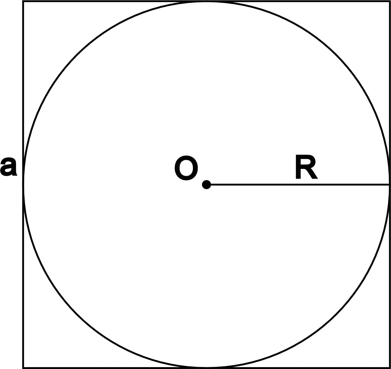 - Через сторону описанного квадрата. Описанным называется квадрат, который касается окружности всеми своими сторонами.