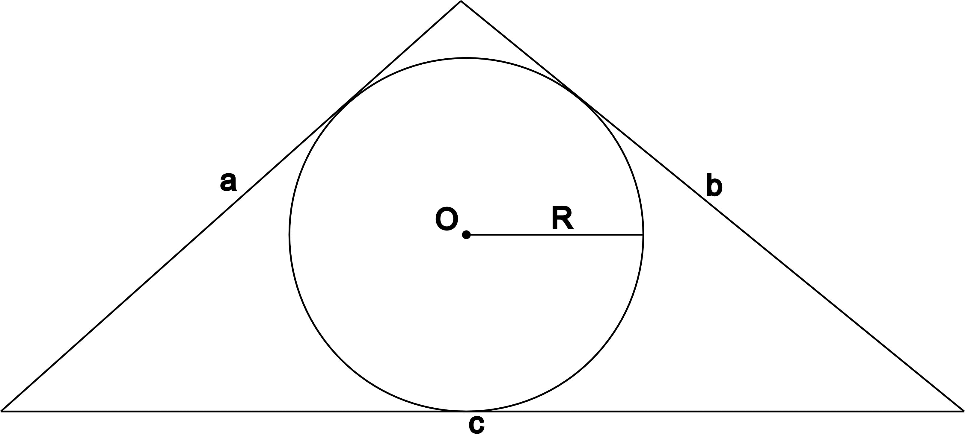 где p - полупериметр описанного треугольника, а S - его площадь. Полупериметр рассчитывается следующим образом: