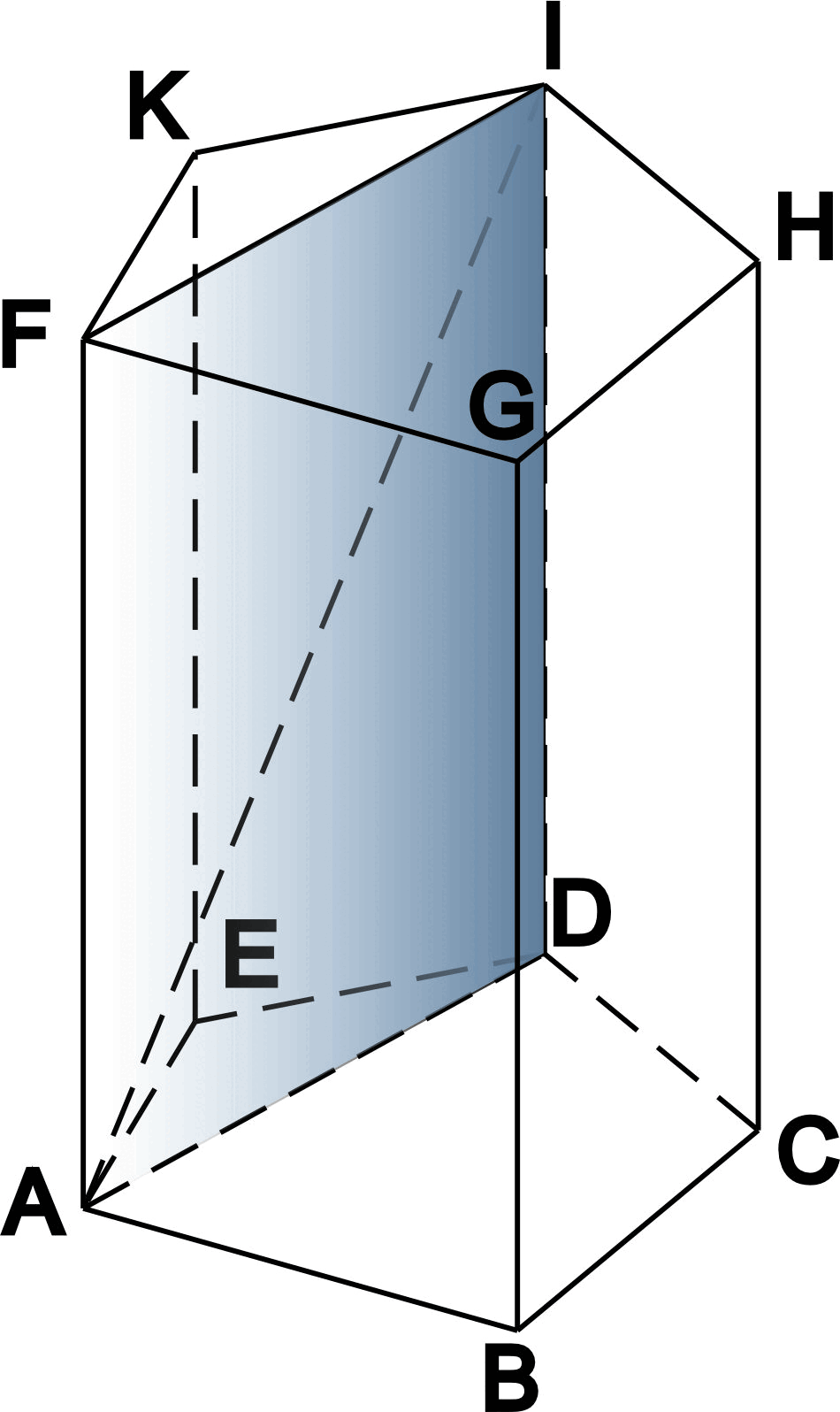 - Диагональное сечение - это пересечение призмы плоскостью, проходящей через два боковых ребра, которые не принадлежат одной грани. Треугольная призма (в основе призмы треугольники) не имеет диагональных сечений.