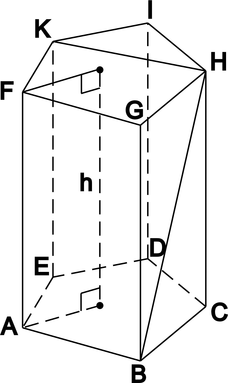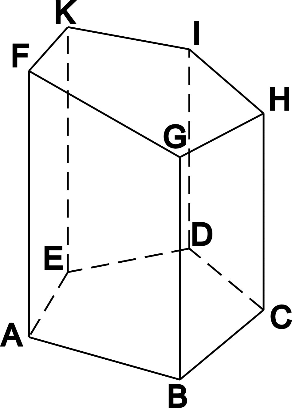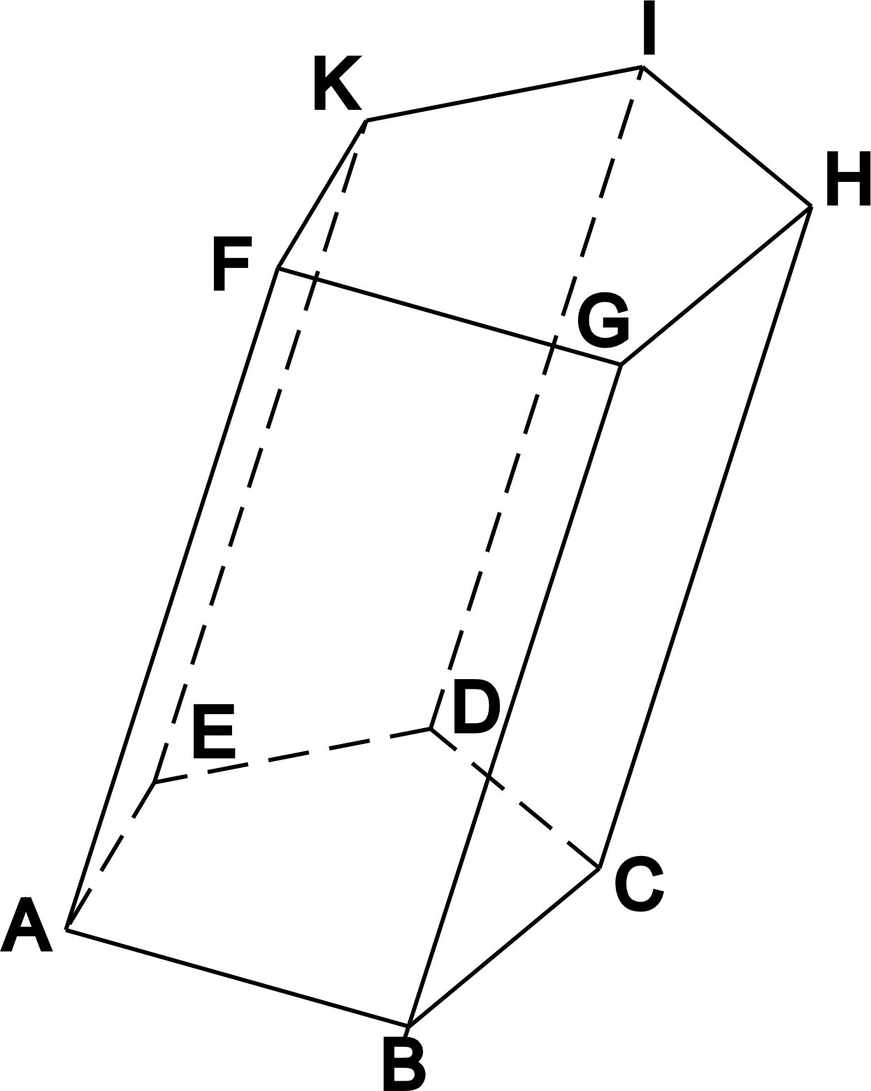 - Основание призмы (ABCDE, FGHIK) - две грани, являющиеся равными параллельными плоскими многоугольниками.